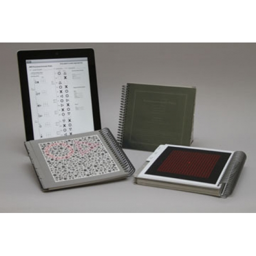 24 Plates, brush, English instructions and score sheet and occluding glasses. The Combo also provides a full set of Amsler Grids. Amsler testing completes the prescribed regimen for acquired color testing such as Plaquenil Screening.