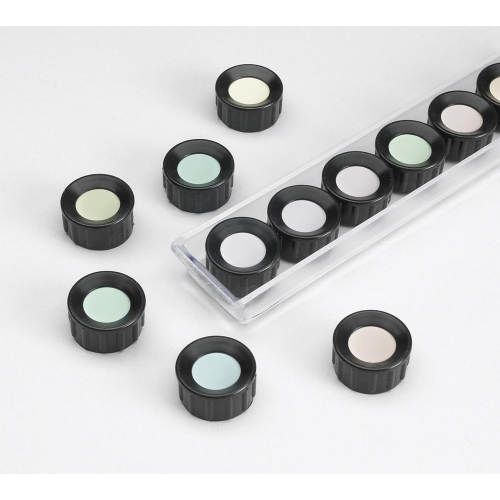 Comes in two versions: loose disc and magnetic. Magnetic version prevents the patient from touching the color chips thus keeping them clean. The chips cannot be lost, either.